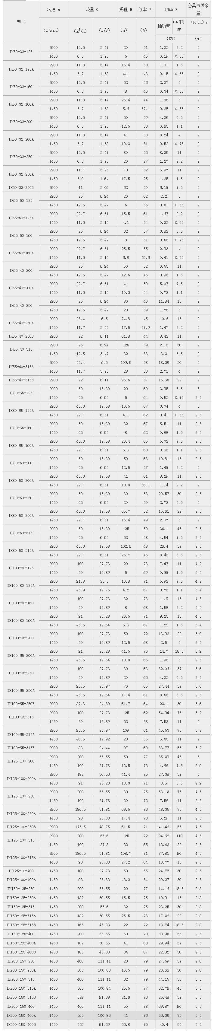 技術(shu)參數: IH型(xing)卧式耐(nai)腐蝕化(hua)工泵