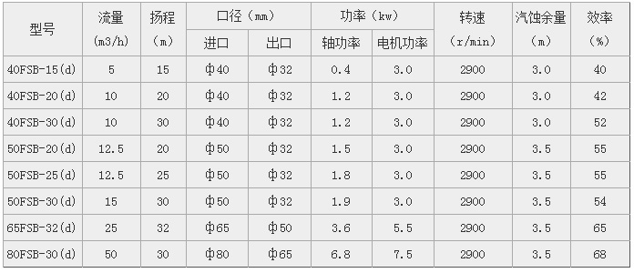 技(jì)術參數: FSB型氟塑(su)料合金化工泵(beng)