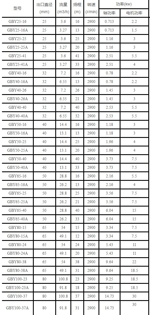 GBY濃(nong)硫酸液(ye)下泵性(xing)能參數(shu)表